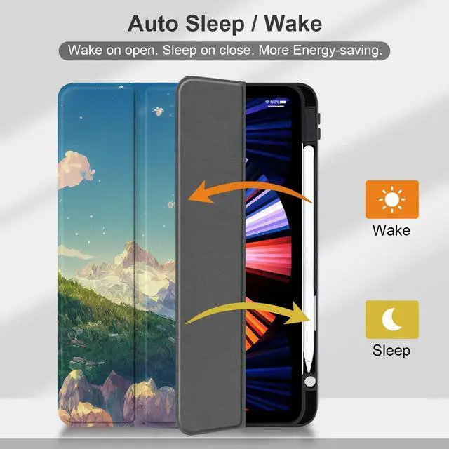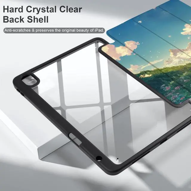 Back Shell: The case features a built-in Pencil Holder that keeps your Apple Pencil safe and secure, and a transparent back shell that allows you to showcase your iPad's original design while providing protection against scratches and other damage ^^ Auto Wake/Sleep and