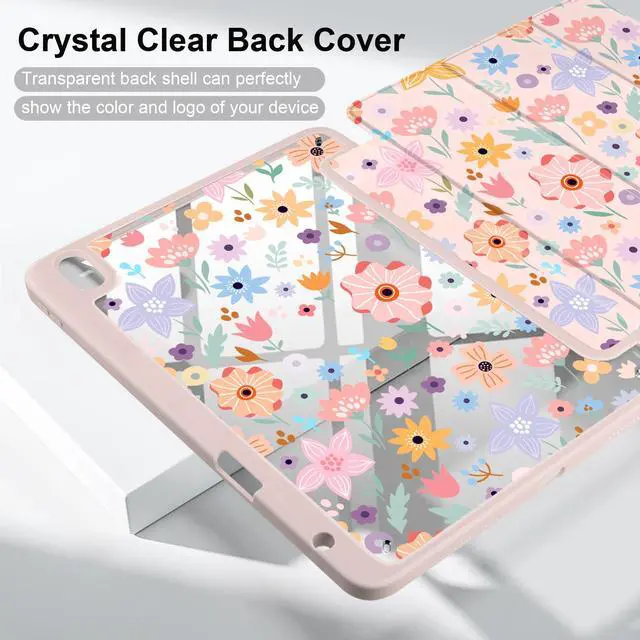 Note: The apple pencil is not includedQ2. Will the clear back be yellow over time? A2. No, the back shell is made of hard PC material, it wont turn yellow, and you can clearly see the back of your iPad even you use it for a long time. Q3. Does the clear back scratch easily? A3. No, the clear back is made of anti-scratch hard PC material, so its not easy to scratch. Q4. Does the pattern printed leather case have a smell? A4. The ink is made of eco-friendly materials. Due to being stored in a sealed bag, there may be a slight odor initially. However, leaving the case in a well-ventilated area for 24 hours will dissipate the odor.