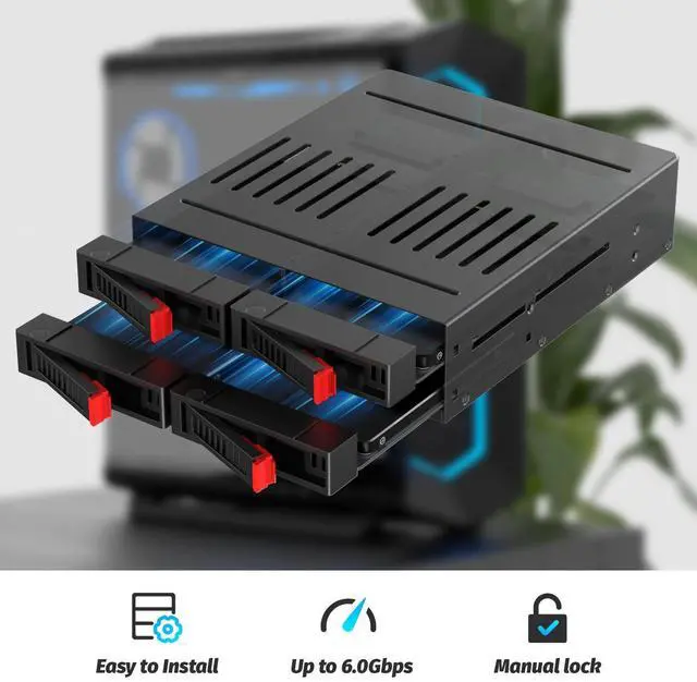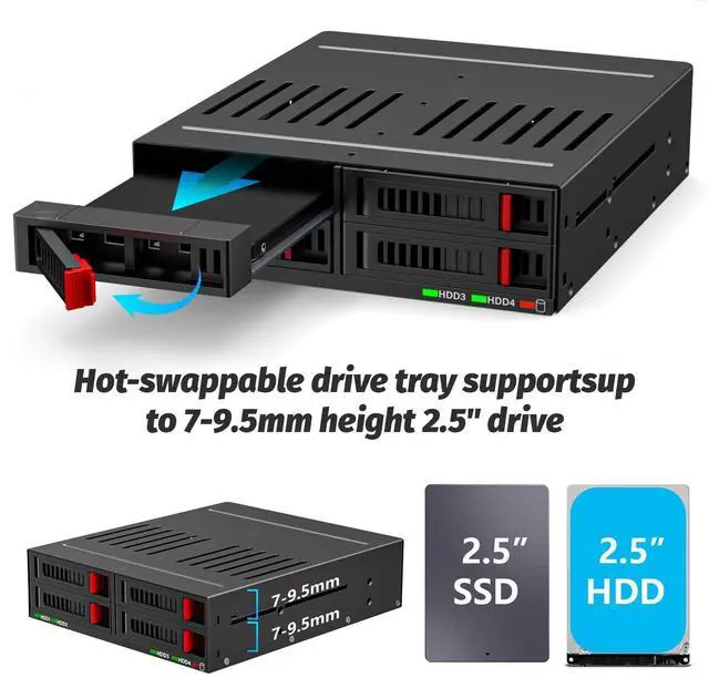 4 Bay SATA HDD & SSD Hot Swap Cage, 4 Bay Hard Drive Dock for 5.25 Enclosure