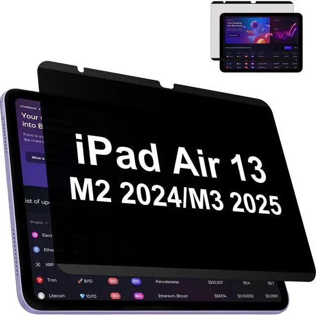 5 seconds to install and remove, no residue and air bubbles. Comes with a high-quality plastic folder, which can keep the iPad privacy screen well when you take off it. ^^ High Definitiona and Sensitivity2025 latest Micro shutter technology make privacy screen iPad Air 7th/8th M2/M3 generation Higher light transmittance creates a high-definition visual experience, which solves the problems of other protective films such as blurring, dizziness, and graininess. The ultra-thin design is 0.2 mm, which keeps the screen highly sensitive, and your Apple pen is accurately and continuously touched without delay. 1:1 precise match with iPad, compatible with all iPad cases.