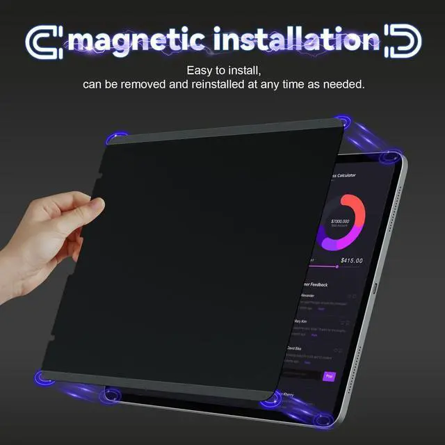 Fit Models: A3268 / A3269 / A3271 / A2898 / A2899 / A2900. and compatible with Apple Pen& other Stylus pens. You can check the model number at the bottom back of your iPad ^^ Privacy Technology Innovation Lets you immerse yourself in whatever reading or watching without worrying about peeking. iPad Air 13 inch privacy screen protector features advanced technologies like micro shutter technology, which reduces the viewing angle to 27. Compared with other privacy screen film, IPROKKO utilizes technological innovation to improve the privacy protection effect. Using antireflective and anti-scratch coating and enhanced magnet strength to meet customers' more needs. ^^ Eye ProtectioniPad Air 6th/7th generation screen protector privacy designed with advanced antireflective coating to block 95% blue light and UV light, effectively protect your eyes from visual fatigue. You can see the iPad Air 6/7th generation privacy filter clearly even outdoors, in sunlight or under lighting. ^^ Strong Magnetic SuctionAfter surveying 100 customers, most of them are dissatisfied with the magnetic force of the iPad magnetic protection film. IPROKKO uses strong NdFeB magnets instead of ordinary magnets, which will not fall off even if the magnetic privacy protection film is covered on another PET film.