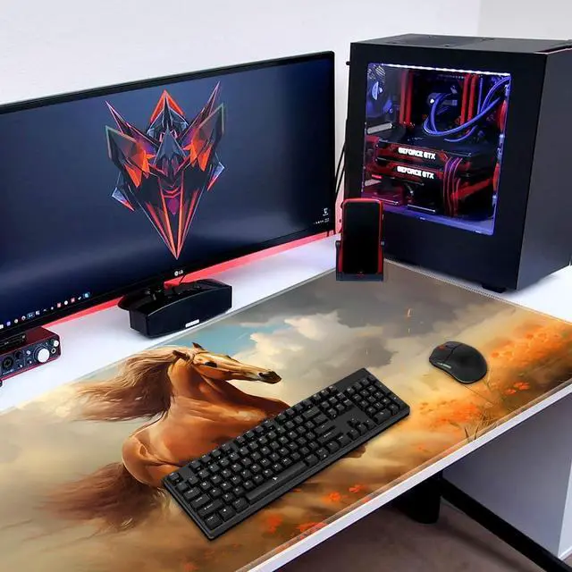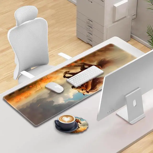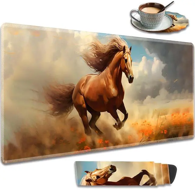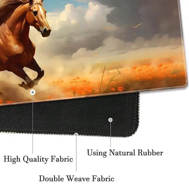 Extended Gaming Mouse Pad 31.5" x 11.8", with Edge Stitching, Non-Slip Rubber Base Keyboard Pad, Suitable for Work, Game, Office, Home and Coasters, Running Horse