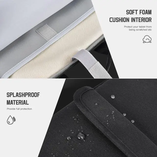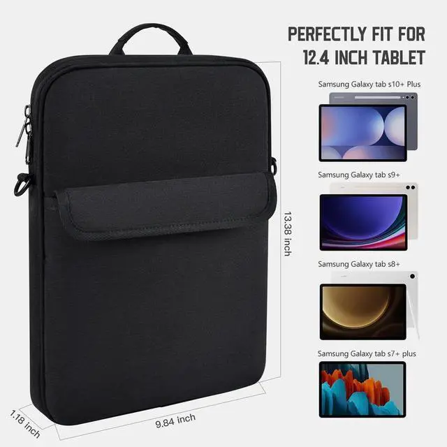For 12.4 Inch Tablets- The tablet sleeve is specially customized for 12.4" Samsung Galaxy Tab S10+ Plus/S9+/S9+ Plus/S9 FE+ 2024 2023 Release, Samsung Galaxy Tab S8+ 2022 Release, Samsung Galaxy Tab S7 FE/S7+/S7+ Plus/S7 FE WLAN 2021 2020 Release. ^^ Superior Protection- The tablet sleeve is made of premium anti-splash polyester exterior, soft lining and padding, effectively keep your precious tablet from accidental bumps, splash, dents and scratch in daily use. ^^ Multiple Pockets- Main tablet pocket x1, front pockets x1, inner pocket x1, multiple compartments design to separate your daily essentials and keep your belongs organized, provides enough space for your phones, books, pens, mouse, cables, wallets, keys, glasses, cards and other small items.