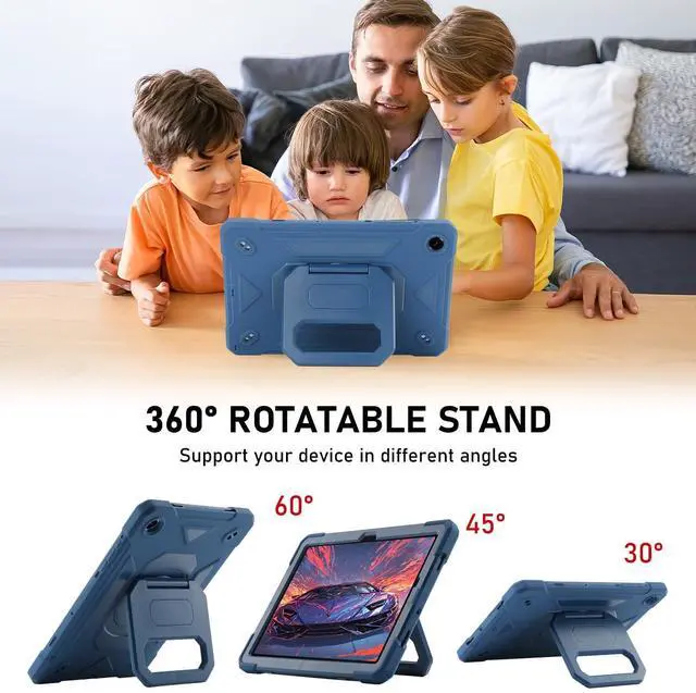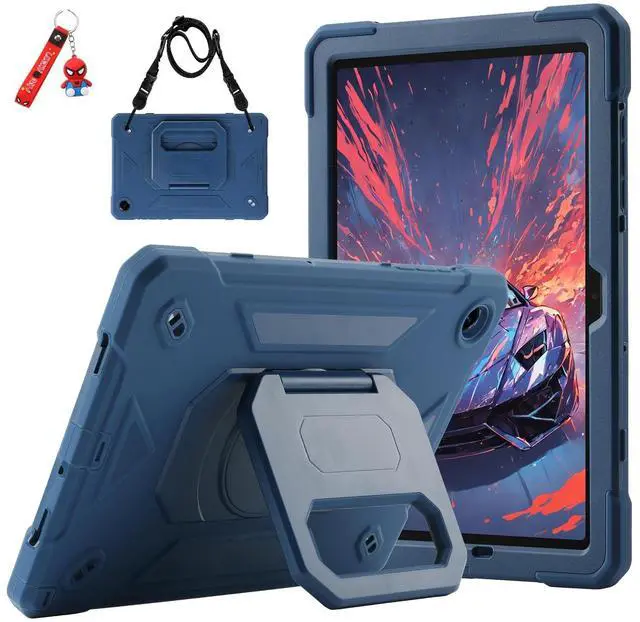 Kids Case for Galaxy Tab A11+ Plus/A9 Plus 11 inch with Rotating Grip Magic Stand,Keychain/Shoulder Strap,Upgraded Military Cover for Samsung Galaxy A11+/A9+ Case (Navy Blue)