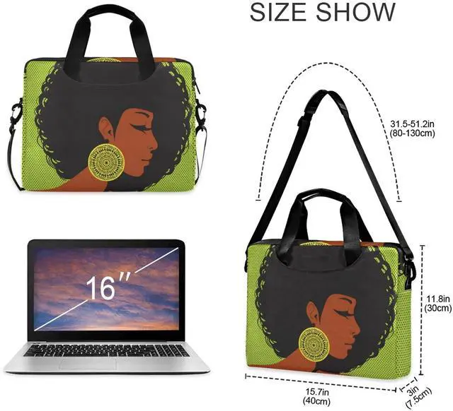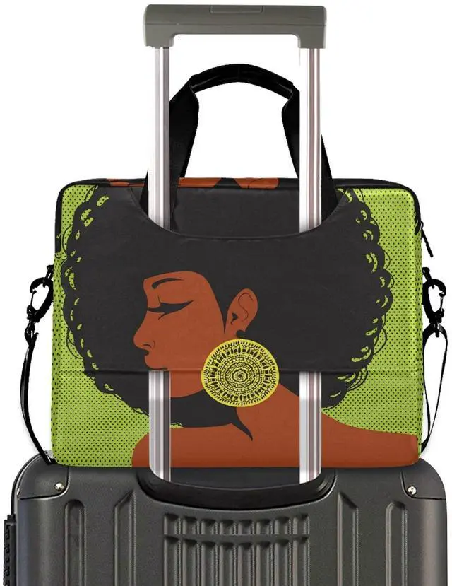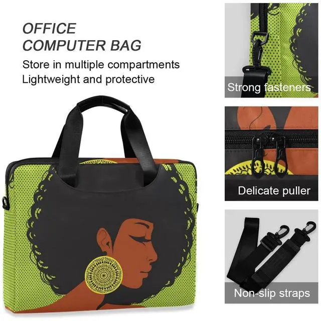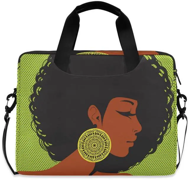 ALAZA African American Woman Afro Laptop Case Bag Sleeve Portable Crossbody Messenger Briefcase w/Strap Handle, 13 14 15.6 inch