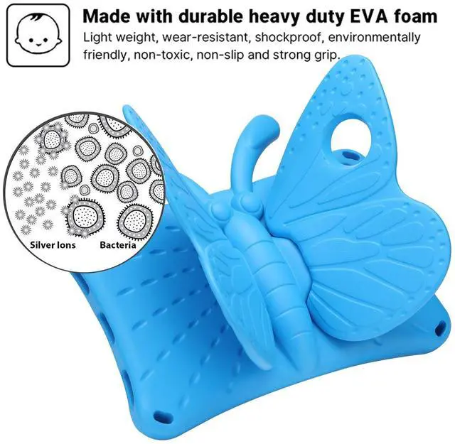 Easy to clean, durable, practically unbreakableSuper lightweight is very suitable for children Boy Girl. ^^ Kid-testedKIDS SAFE & TESTED. This EVA rugged case can protection against child's rough throws and falls on the floor and against the walls from unforgivable heights. The foam creates enough of a lip all the way around to protect the screen too, which is a must in BABY family. ^^ Convenient Handle and Kisckstand The top handle was very easy for Kids' small hands to grip securely and comfortably. With kickstand for the kiddo can prop up the tablet while watching a video, pre-K learning or playing an educational games.