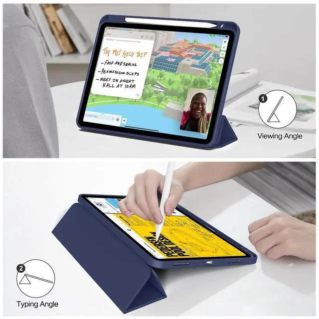 Two Viewing Angles: The shell design of the tri-fold stand can easily change the angle to meet your viewing and typing needs, you can have an excellent experience when you are relaxing or working.