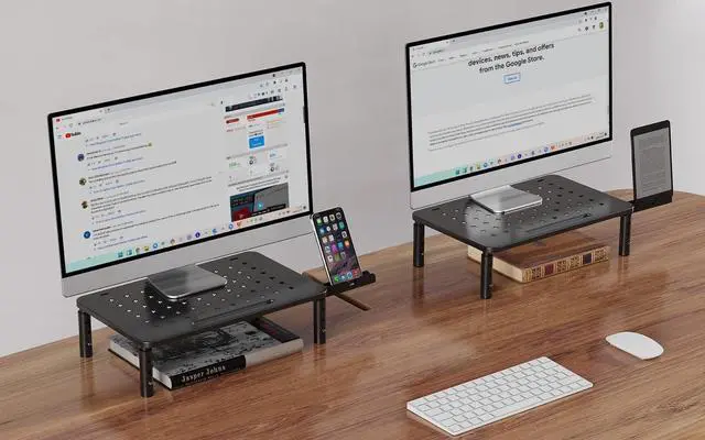 SAVE SPACE & Get ORGANIZED: Make full use of the space under the stand risers' platform, keep your office supplies (book, pens, and other accessories) under monitor to keep desktop clean and organized. ^^