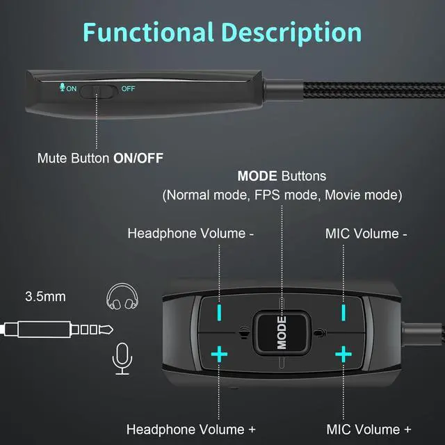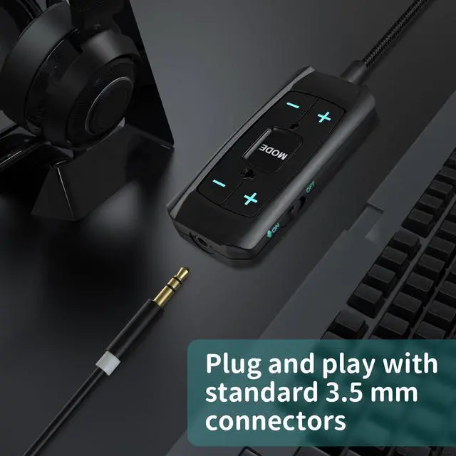 Virtual 7.1 Surround SoundThis USB sound card uses 7.1 multi-channel surround sound effects to enhance the players ability to locate low frequencies (footsteps) and high frequencies (gunshots) and accurately hunt the world. Surround sound delivers rich and immersive audio, brings you immersive listing experience with vivid sound field, sound clarity, shock feeling sound. Perfect for various games, drive any 3.5 mm gaming headset excellently. ^^ Effortlessly Volume ControlThis Advanced Audio Control Box offers effortless operation with volume control, microphone sound on / off and mute button on the left, freely adjust the volume for both your microphone and headphones.