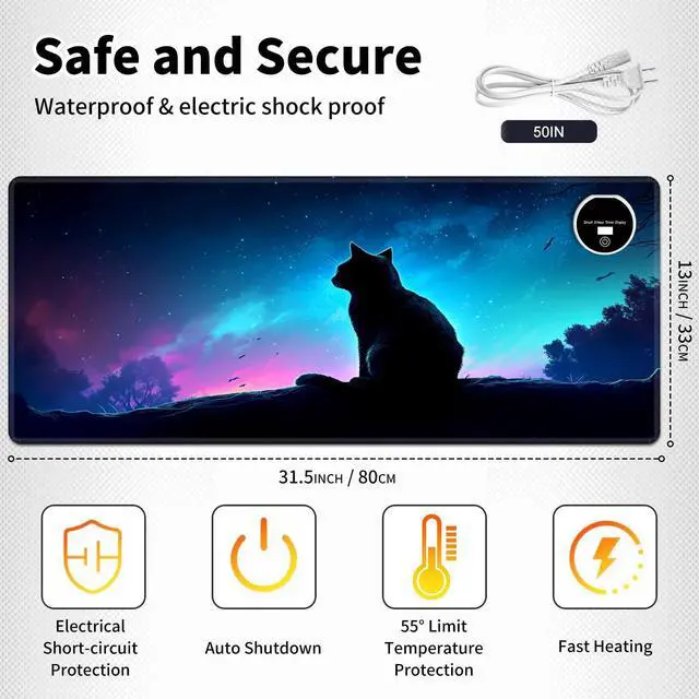 Multi-function Use: More than just a mouse pad, it can also serve as a desk pad, keyboard heater, heated mouse pad hand warmer, electric feet warmers, cat's sleeping mat, pet mat. Use on multiple occasions such as working, midday rest in home. It is not only a perfect work desk accessorie in winter, but also as a best gift for your family or friend on Christmas, Birthday, Thanksgiving Day, Boxing Day or other festivals. Winter essential items.
