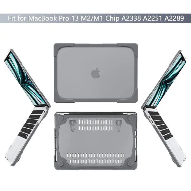 MILITARY-GRADE HYBRID ARMOR- A true heavy-duty hybrid fortress built for users who carry their MacBook everywhere. Features a scratch-resistant matte PC back paired with a thick, shock-absorbing TPU bumper. Reinforced Airbag corners disperse impact from real-world drops, backpack pressure, and daily accidents protection designed to survive travel, not just desk use. ^^ ALL-IN-ONE ERGONOMIC WORKSTATION Ditch your bulky metal stand. The built-in Invisible Foldable Kickstand raises your screen to a comfortable eye level, reducing neck strain during long work, study, or coding sessions.