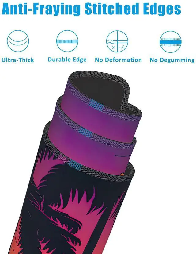 • Special DesignThis large mouse pad is crafted with a slip-resistant rubber base, which effectively prevents the mouse and keyboard from sliding and moving.Desk mat with durable stitched edges ensures the mouse pad will not degum or deform during use