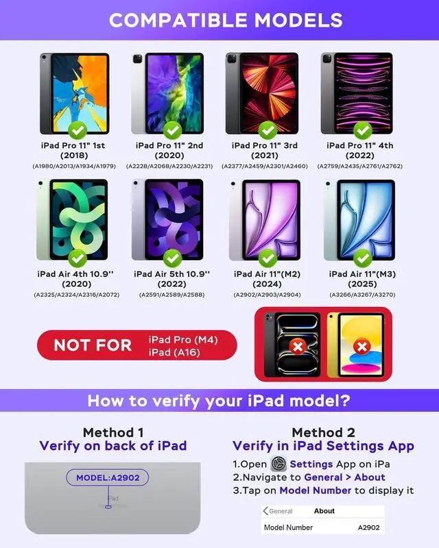 The keyboard keys are designed to stay in place and provide a quiet typing experience, perfect for office or library use. ^^ Colorful Backlit KeyboardExperience the ultimate convenience with the colorful backlit keyboard, allowing you to type effortlessly even in low-light environments. Choose from a variety of 7 colors to suit your mood and style. ^^ Hybrid Shockproof ProtectionProtect your iPad 11 inch with this hybrid shockproof protective cover. It offers reliable protection against accidental bumps, scratches, and drops, ensuring the safety of your device at all times. ^^ iPad Pro 11 inch Keyboard Case Compatible with 10.9 InchNo pen or charger included! The keyboard Cover is designed for iPad Pro 11 4th Gen 2022(Model No.