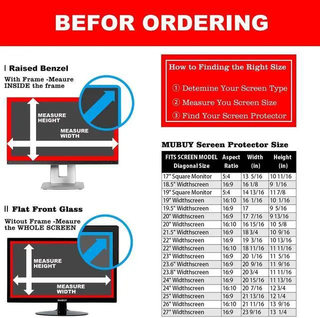 WHO NEEDS MORE A BLUE LIGHT FILTER-insomniac, students, office staff, game lovers, fashion beauty, pregnant women, elderly, filter out Blue Light and relieve computer eye strain to help you sleep better ^^ RELIEVE EYE FATIGUE AND HELP YOUR SLEEVE BETTER- genius 8-layer design, our eyes protection anti blue light screen protector 100% Block Hazardous UV light and effectively block the most hazardous HEV blue light of 380-495nm and Electromagnetic radiation, help you block electronic hazards ^^ ANTI GLARE ANTI STRONG LIGHT REFLECTION -unlike other glass or film cover, our anti blue light screen protector coming with anti glare matte coating, effectively reduce the visual interference caused by strong light from the screen while in a high light conditions ^^ OLEOPHOBIC COATING - industry leading highly hardness with MUBUY INC oil layer separation technology, it will separates oil, sweat, and water on daily use, you can just wiping it with a clean cloth to make it as clean as new ^^ WORRY FREE 180-DYAS you can get screen protector*1 If you have any questions, please contact us, our seller support team will help you in time