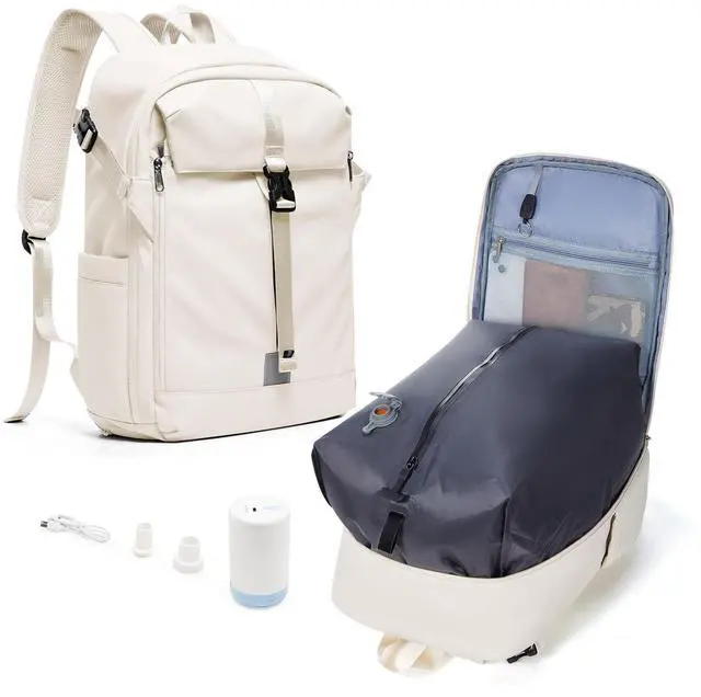 ^^ Multi Functional Pockets: The vacuum backpack features 6*compartments, including 1*front pockets, 1*large expandable vacuum compression bag main compartment, 1*side pocket, 1*wet pocket, 1*bottom shoe compartment, 1*anti-theft pocket. It has multiple built-in multifunctional pockets for superior storage.