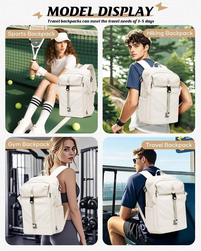 ^^ Independent Shoe Compartment: The bottom shoe compartment of this travel backpack features an expandable design that can be used as a separate shoe compartment when needed, allowing you to easily switch between slippers or low cut casual shoes and sneakers. After folding, it can also be used as a stylish daily casual backpack. ^^