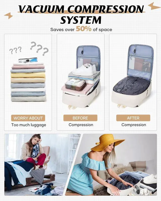 Innovative Vacuum Compression System: The vacuum backpack saves 50% of clothing storage space and reduces the volume of packaged clothing. The air backpack uses a double-layer airtight zipper, which can manually release air by opening the valve, and then use a vacuum pump to achieve faster compression.