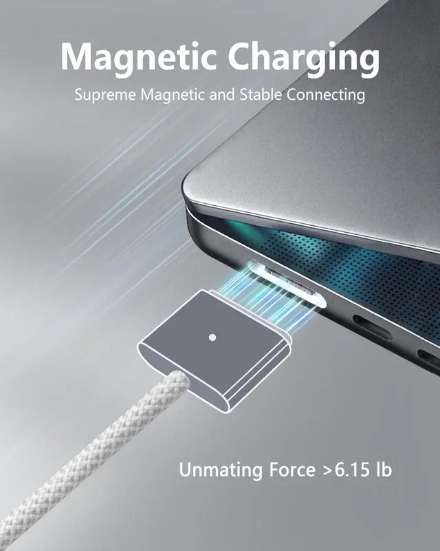 Supreme Strong Magnetism: The strong magnetism design of one end sharply guides the plug to match the charging port of your MacBook. Meanwhile it resists most unintended disconnects to ensure fast charging.