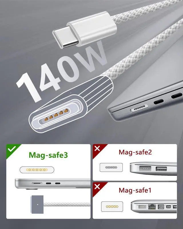 Your MacBook: The 140W USB-C to Magnetic 3 Cable is made for charging MacBook Air 13/15-inch M3 2024, MacBook Air 15-inch M2 2023, MacBook Air 13-inch M2 2022, MacBook Pro 14/16-inch 2023/2021.