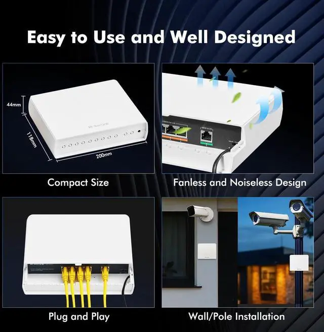 Gigabit Ports: Includes 4 Gigabit POE ports, 1 Gigabit Uplink Ports (not PoE), all ports support gigabit rate (1000Mbps), can provide more bandwidth and connect 4 poe devices.