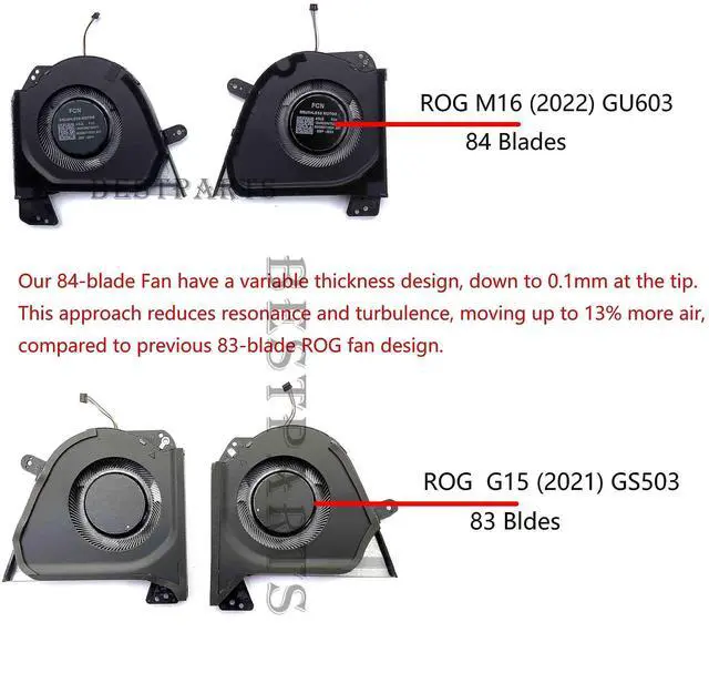 CPU+GPU Cooling Fan Replacement for ASUS ROG Zephyrus M16 (2022) GU603 GU603ZE GU603ZM GU603ZW GU603ZX 13NR08R0T02011, 13NR08R0T03011 (84 Blades and Moving up to 13% More air Than ROG G15 GA503 2021)