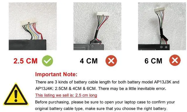 (Note: Short cable 2.5 cm. NOT fit for 4cm or 6cm long battery cable. ) ^^ Compatible Laptop ModelsAcer Chromebook 11.6" C720P Series, Acer ChromeBook 11 C740 Series, Acer Chromebook CB3-431-C5EX Series. (NoteNot fit for Acer Chromebook 15 CB3-532-C47C N15Q9 Series) ^^