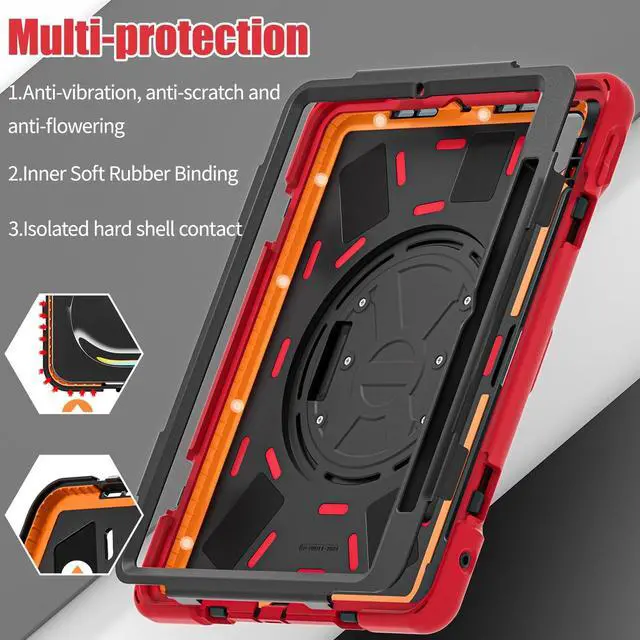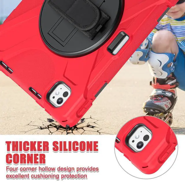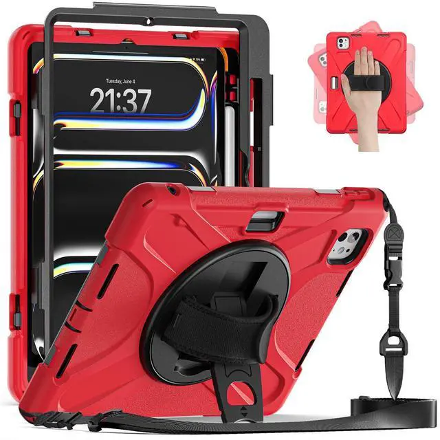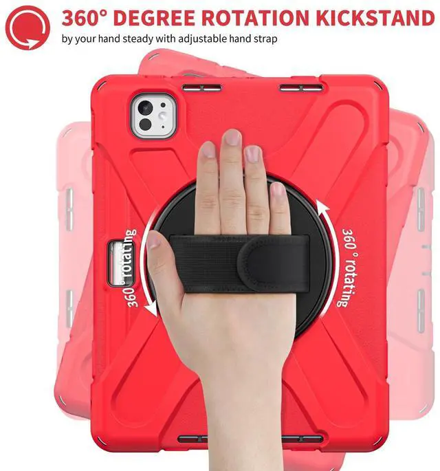 Hand Strap Design: With a 360 rotating hand strap design, this case offers versatile handling options, allowing you to comfortably carry your iPad Pro in any orientation, making it ideal for on-the-go use. ^^ Foldable Portable Stand and