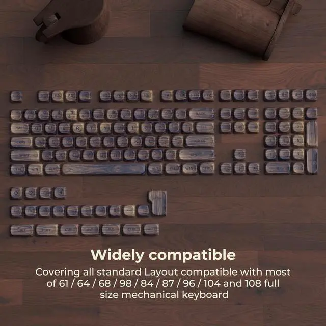 Authentic Walnut AestheticsThermal Sublimation Mastery: Lifelike wood grain patterns infused into high-grade PBT material via advanced thermal transfer technology. Brings the warmth of natural walnut to your workspace, with vibrant, fade-resistant colors that last. ^^ MOA Profile Engineering Expertly crafted with a smooth, rounded MOA profile, each 1u keycap not only enhances the visual appeal of your mechanical keyboard but also provides a comfortable, ergonomic typing experience that reduces fatigue during long sessions. ^^ Uncompromising