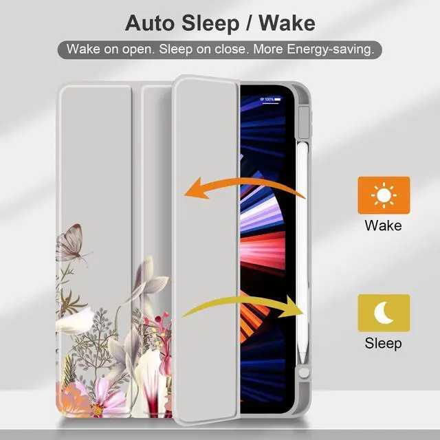 Note: The apple pencil is not includedQ2. Will the clear back be yellow over time? A2. No, the back shell is made of hard PC material, it wont turn yellow, and you can clearly see the back of your iPad even you use it for a long time. Q3. Does the clear back scratch easily? A3. No, the clear back is made of anti-scratch hard PC material, so its not easy to scratch.