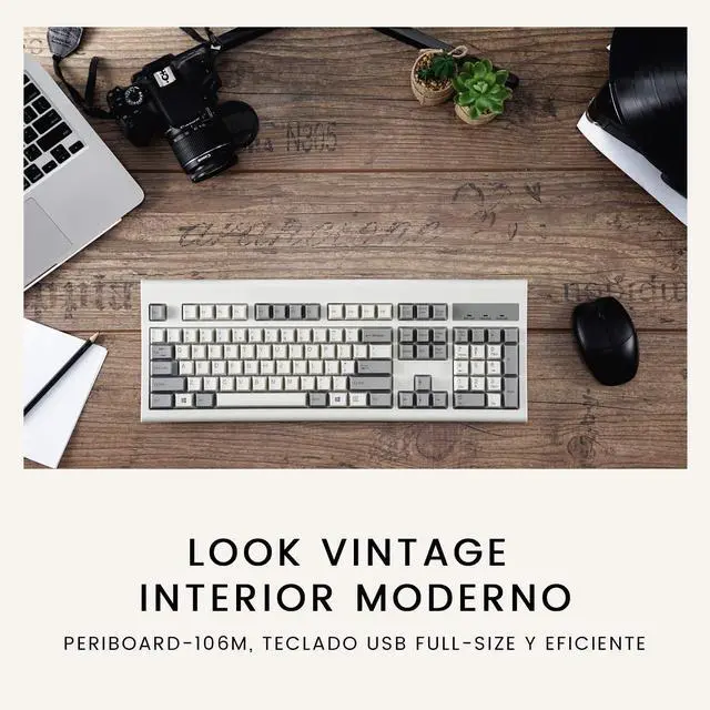 Perixx PERIBOARD-106 Classic Keyboard is bringing back the 80s style to your desktop. Featuring a curved keyboard frame with a long-key structure offers comfort for long hours of typing. Durable and reliable keyboard for your workspace. Compatible with Windows 7, 8, 10, 11, or later, one free USB port. It is available in three different colors: White, black, and retro gray.