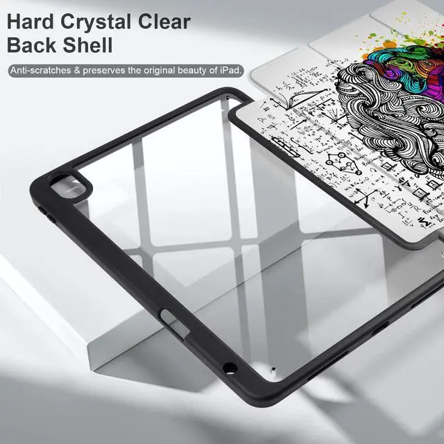 Back Shell: The case features a built-in Pencil Holder that keeps your Apple Pencil safe and secure, and a transparent back shell that allows you to showcase your iPad's original design while providing protection against scratches and other damage ^^ Auto Wake/Sleep and
