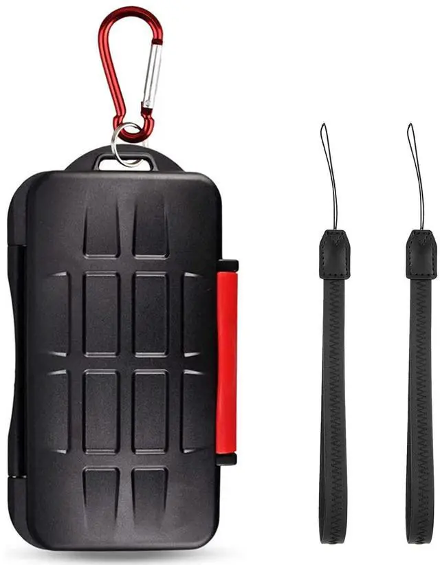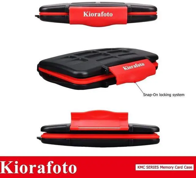 Memory Card Case This Kiorafoto Memory Card Case for 12SD Cards & 12 Micro SD Cards is a sturdy protective case for your memory cards. It keeps the cards safe from shock and moisture. The case has a molded rubber interior lining, as well as a durable polycarbonate resin exterior with a weather-resistant seal to keep out water, dust, and debris. / Hand Wrist StrapThe hand wrist strap lanyard is about 9.25 ''( 23.5CM ) long. It fits well like a bracelet on your wrist. Thread a strap through the end so you can at least track it if your item falls somewhere.