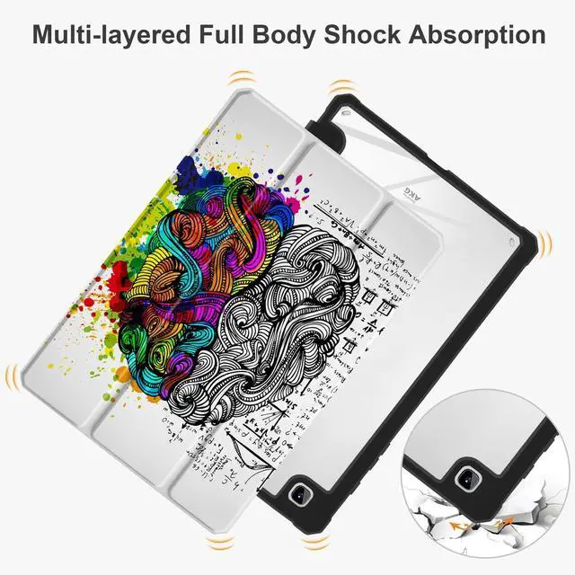 Batianda Case for Samsung Galaxy Tab S6 Lite 10.4 inch 2022/2020 Model (SM-P610/P613/P615/P619) with S Pen Holder Shockproof Cover with Clear Transparent Back Shell TPU Bumper Auto Sleep/Wake, Brain