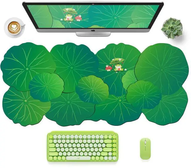 Large Size & Vivid Design: With dimensions of 35.4 x 15.7 inches, this desk mat offers ample space for your mouse, keyboard, and more. Its vivid frog and lotus leaf print adds a touch of personality to your desk and won't fade over time ^^