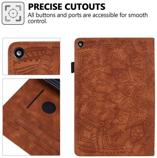 Features: Pretty mandala flower embossed surface, offers exquisite and attractive look for your tablet. Easy access to all features and controls (camera, charging port, volume button, etc) without removing the case. Elastic strap closure ensures cover securely closed, double fixing your device when fold the front cover backward for reading. Front-to-back protective cover case give a full protection for your tablet against dust, water, fingerprints, scratches, shocks and bumps. It can be used as a stand with adjustable horizontal position that allows you to view it easily when it is placed on a desk. Interior with 2 card holders for carrying your ID/ credit cards/ business cards/ photos. Side with an elastic loop holder for stylus.