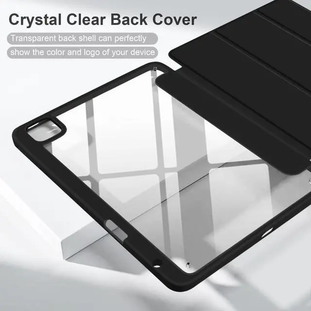 Batianda Hybrid Case for iPad Pro 11-inch 2025 M5 2024 M4 Chip [Built-in Apple Pencil Slot] Stylish Design Trifold Stand Premium Cover with Clear Back Shell TPU Bumper Auto Wake/Sleep, Black