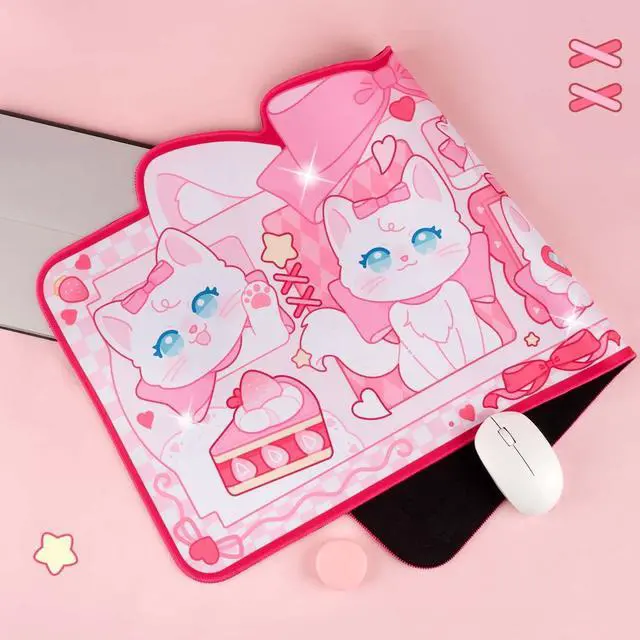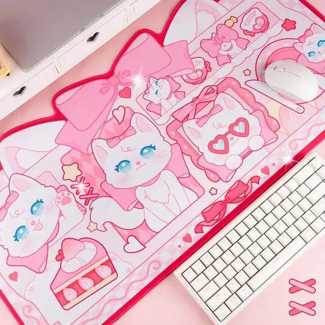 Bring charm and cuteness to your desk with this kawaii white cat desk mat! Featuring a pastel pink background and a sweet cartoon kitty with a bow, its the perfect addition to any anime, cozy gamer, or cutecore setup. A must-have gift for kawaii lovers, students, and anyone who wants a dreamy workspace!