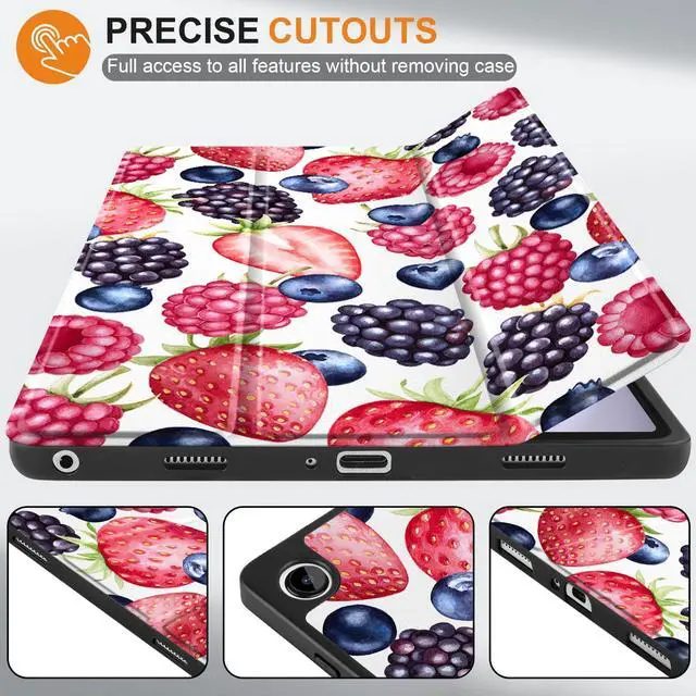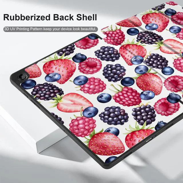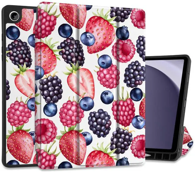 MEEgoodo Case for Samsung Galaxy Tab A9 Plus 11 inch Cover 2024 2023 with S Pen Holder,A9+ Smart Tablet Cases with Leather Trifold Stand+Soft TPU Back Shell+Smart Auto Wake/Sleep,Fresh Berries Pattern