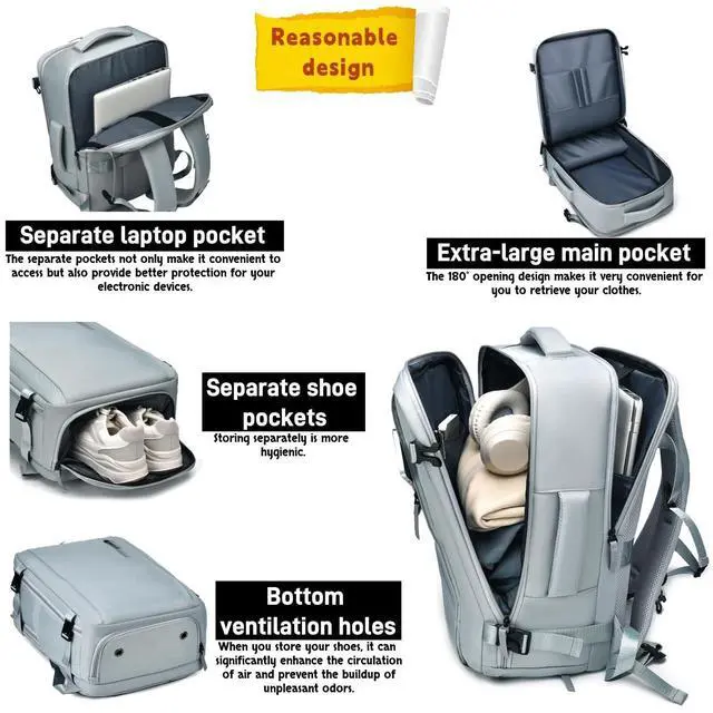 AIRLINE APPROVED & PRACTIALThis backpack complies with the airline's requirements. It can be opened 180 degrees like a suitcase, allowing for quick passage through airport security checks. It is specially designed for air travel.