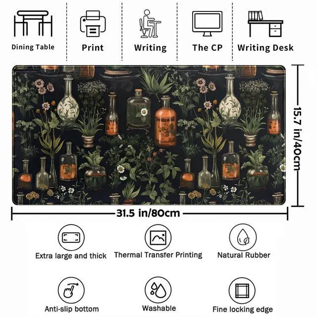 Stable Operation: The bottom of the mouse pad is stitched together with the non-slip rubber base. You won't get distracted by the sliding of mouse pad when you're working or playing gamesMaterials: Breathable fabric, comfortable Lycra Surface and Non-Slip Rubber BaseX-Large Size 31.5 x 15.7 Inch / 80X40 CMThickness 0.12 Inch / 0.3