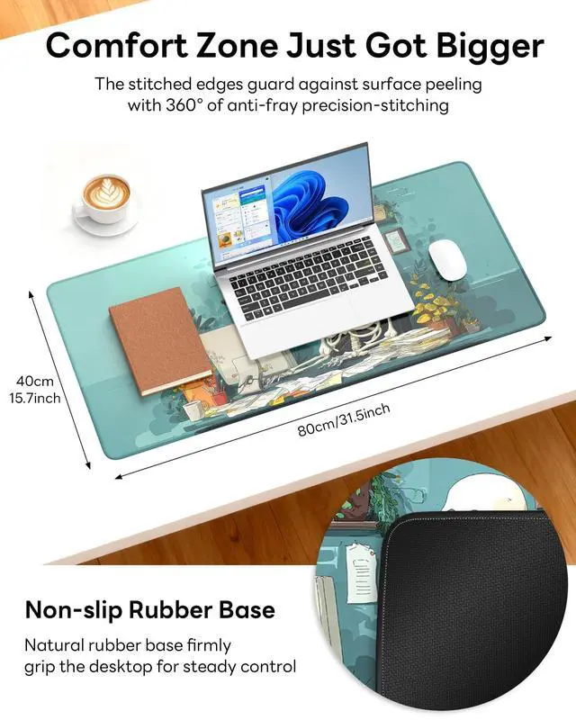 Non-slip Rubber Base: The soft & thick rubber backing has a dense non-skid texture, keeping your desk mat firmly in place. This oversized mouse pad stays uniformly flat on imperfect surfaces. Immerse yourself in work or games without annoying mat movement ^^ Easy to
