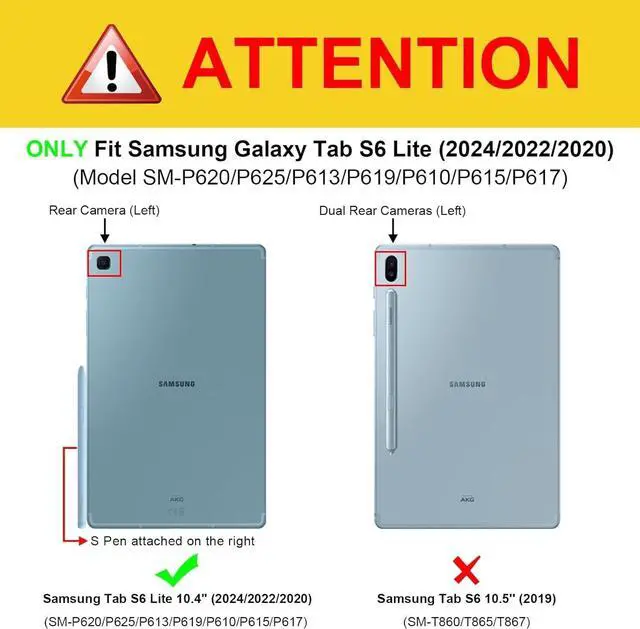 Perfect Fit- This Case is compatible with Samsung Galaxy Tab S6 Lite 2024(Model: SM-P620/P625), Galaxy Tab S6 Lite 2022 (Model: SM-P613/P619), and Galaxy Tab S6 Lite 2020 (SM-P610/P615/P617) ONLY. It will NOT work for any other model device. ^^ High qualityGood quality with PU synthetic leather exterior and non-slip inner lining. Sturdy materials provide full protection for your tablet. It is closed with an elastic band, which makes the tablet firmer when closed, and protects the screen and the cards inside from falling out. ^^ Multi-angleMultiple deep grooves, multiple horizontal stand angles adjustable, you can fix your tablet in an ideal viewing angle or comfortable position. Easy to switch between occasions. ^^ Multi-card slotBuilt-in card slots can hold credit cards, ID cards and even a small amount of change. Extremely stable when using the stand function. There is a pen sleeve on the side of the protective cover for placing the pen. ^^ KEFBWAO ServiceWe will provide the best service to our customers. If you have any questions after purchasing the goods, please contact us and we will give you quick answers and satisfactory solutions.