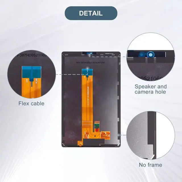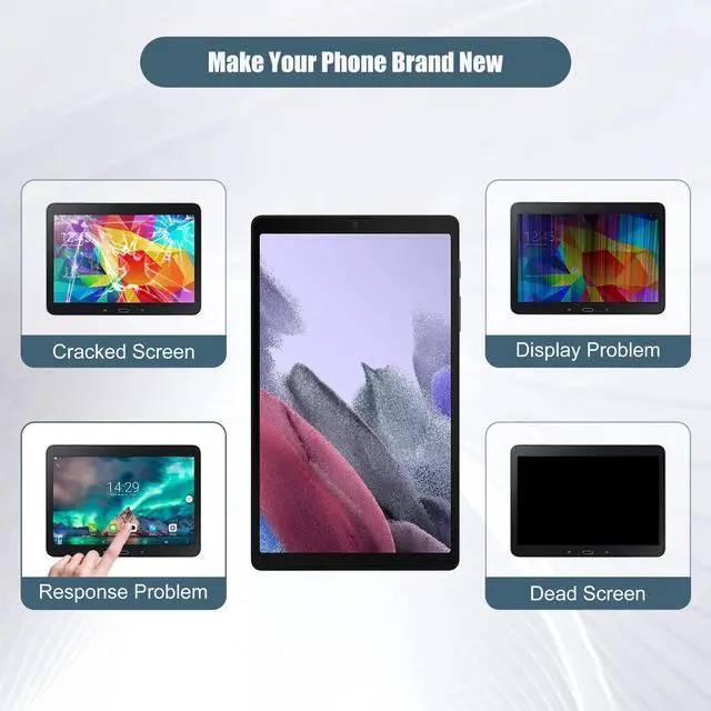 pixelsPackaging: 1 x LCD, 1 x toolCompatible withSamsung Galaxy Tab A7 Lite SM-T225 SM-T220A few tips for intallation1. When you receive the screen, please check if it is in good condition. If the item is damaged on arrival, please let us know by sending us a message. 2. Please carefully remove your cracked screen and connect the new screen to the mainboard, then turn on your phone to see if it works before installation. A hair drier will help you to remove your cracked screen. 3. The cable on the screen is very fragile, do not bend it hard. 4. There're lots of instruction videos on internet, you can watch some videos to learn how to fix it or find a professional technician to help with you. How to protect your cellphone screen1. Do not put your phone together with keys, coins or other metalworks, because these things may scratch your phone screen. 2. Use a screen protector to protect your screen. 3. Keep your phone away from Magnetic materials, because the magnetic materials may cause dead touch if you put them together for a long time.