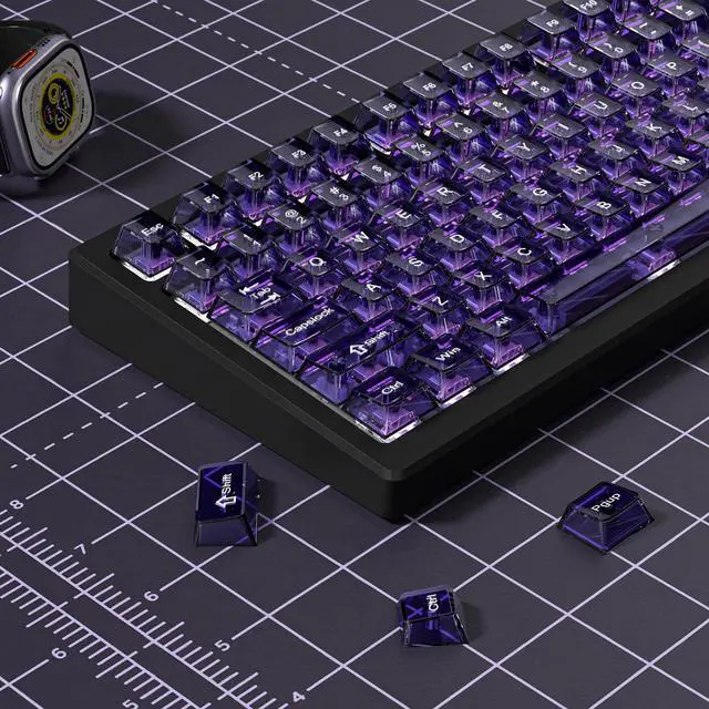 Durable and long-lasting materialMade of advanced PC material, these gaming keycaps are resistant to friction, wear and tear, ensuring a long-lasting and comfortable gaming experience. ^^ Transparent keycap set Shine through keycapsHd light transmission features, minimalist style, enhance the beauty of mechanical keyboard, so that your keyboard looks high-end atmosphere. ^^ Ergonomic Cherry Profile Key capsClassic design. Ergonomically, it won't be tired after long-term use. ergonomic design cherry height, designed for backlit/non-backlit mechanical keyboards. ^^ Widely CompatibleOur 115-key set is designed to fit full-size keyboards, 75% keyboards, and smaller.