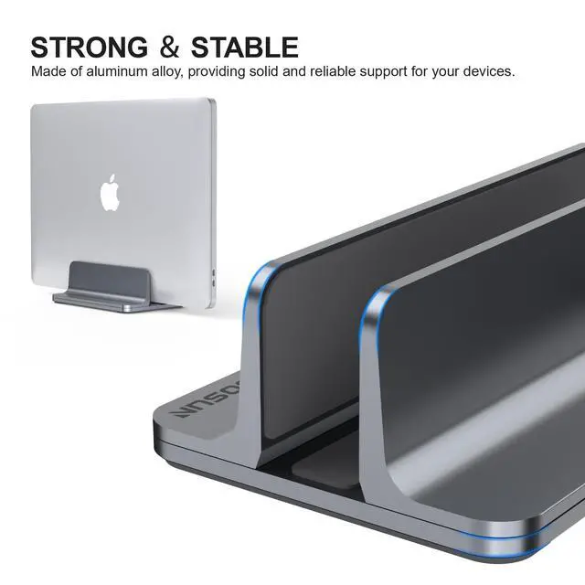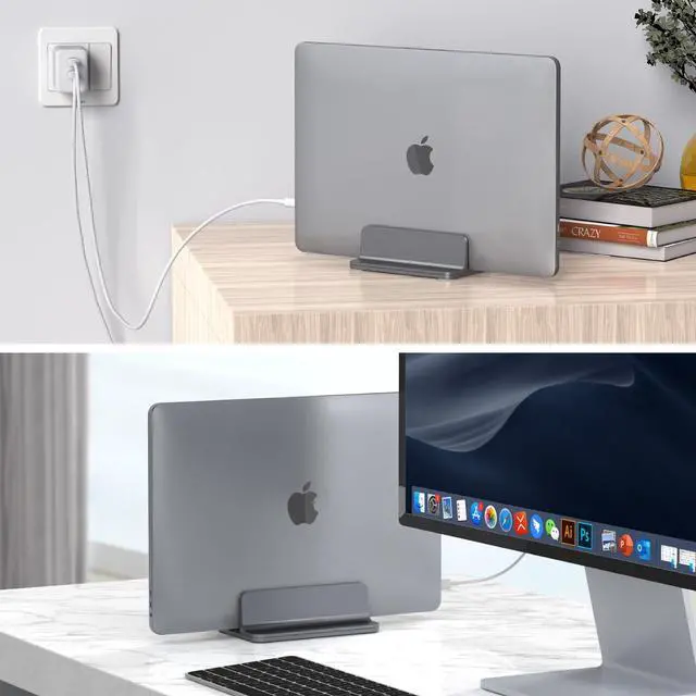 Singe-Slot Design: Vertical stand features one slots, allowing you to store a laptop or a tablet simultaneously, making it a space-saving solution for your desk.