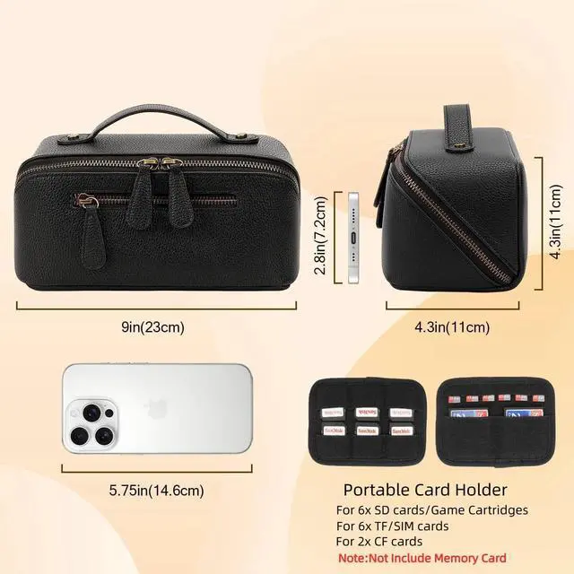 Smart Organization: This tech pouch helps you find gear in a flash. It features smart compartments for all essentials and a removable panel for tiny items like SD cards. The ultimate cord organizer, it ensures everything has its place ^^ Durable & Easy to Clean SurfaceMade with waterproof PU leather, this bag allows quick and easy cleanupjust wipe off coffee or other liquid spills with a cloth. No stains, no fuss. It maintains a sleek and professional look through daily use ^^