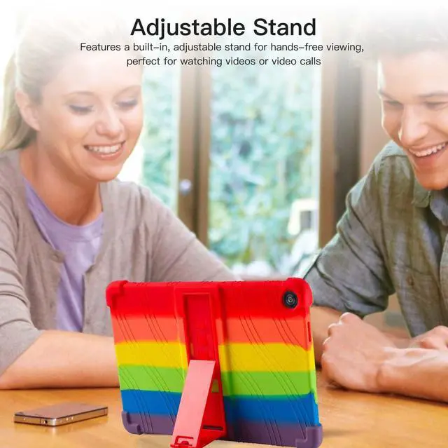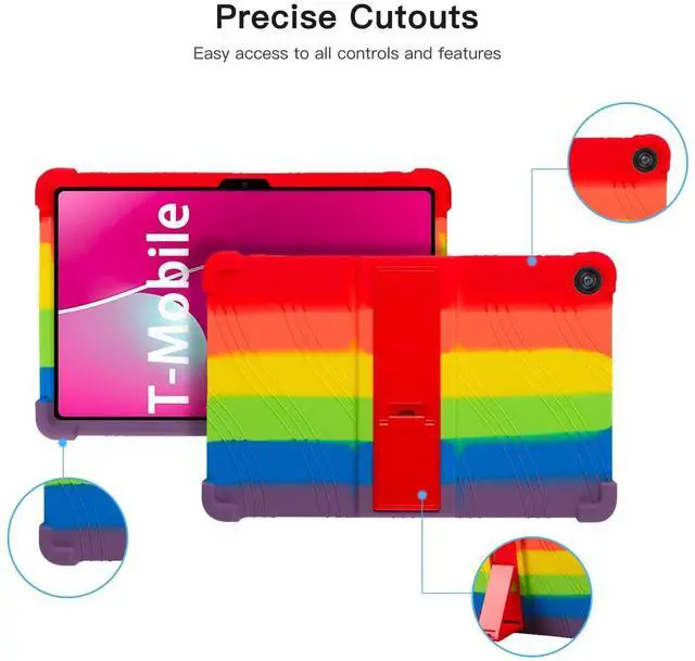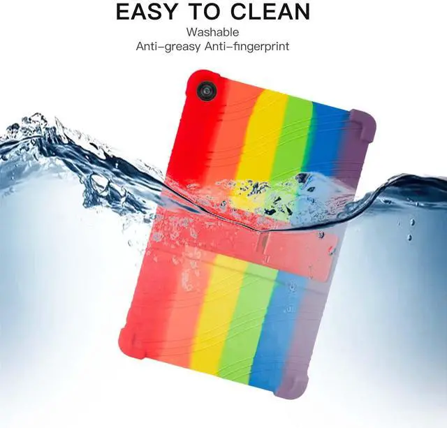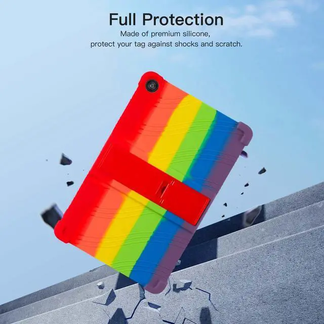 Protect your Tablet 10-inch tablet with this premium soft silicone case, designed for maximum durability and ease of use. Ideal for kids, the case features a non-toxic, eco-friendly material that provides a smooth and secure grip. The reinforced 4-corner shockproof design absorbs impacts, offering excellent protection against drops and bumps. An integrated adjustable stand allows for hands-free viewing, perfect for watching videos, playing games, or video chatting. Precision cutouts ensure full access to all buttons, ports, and cameras without removing the case, while its lightweight design keeps your tablet easy to handle.
