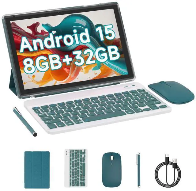 Android 15 Tablet Passed Google Mobile Services (GMS) certification, pre-installed Google Play, supports Facebook, Twitter, YouTube, Tiktok, Line, Instagram and other fashion social applications, supports Microsoft Office software. ^^ 2 in 1 Tablets with keyboard Android 15 tablet with Case Mouse Stylus keyboard and more, In order to provide convenience for your work, life and entertainment, you can switch three modes of use at any time, 32GB ROM With Google Play pre-installed, you can download apps like Facebook, Twitter, Instagram, and more.