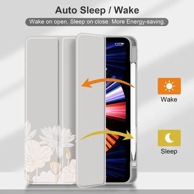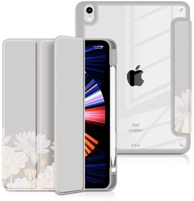Note: The apple pencil is not includedQ2. Will the clear back be yellow over time? A2. No, the back shell is made of hard PC material, it wont turn yellow, and you can clearly see the back of your iPad even you use it for a long time. Q3. Does the clear back scratch easily? A3. No, the clear back is made of anti-scratch hard PC material, so its not easy to scratch.