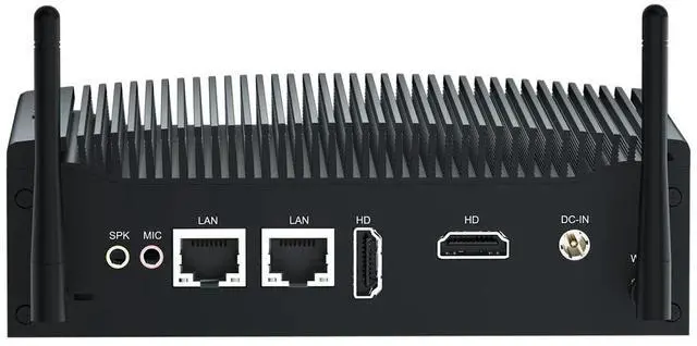 Built-in In-tel UHD 600 Graphics ensures faster image processing speed, bringing you first-class visual effects. ^^ Stable Connection Mini Fanless PC has built-in 2.4G hz+ 5.0G hz Wi-Fi and BT 4.2, which can easily connect various wireless devices and save desktop space. There are also Dual RJ45 Ethernet up to 1000Mbps to ensure a stronger and more stable WiFi signal and network environment. ^^ Fanless Design & Extra FunctionsMicro pc adopts a fully enclosed aluminum alloy body and fanless design. The large heat dissipation area allows heat to be quickly dissipated from the inside.